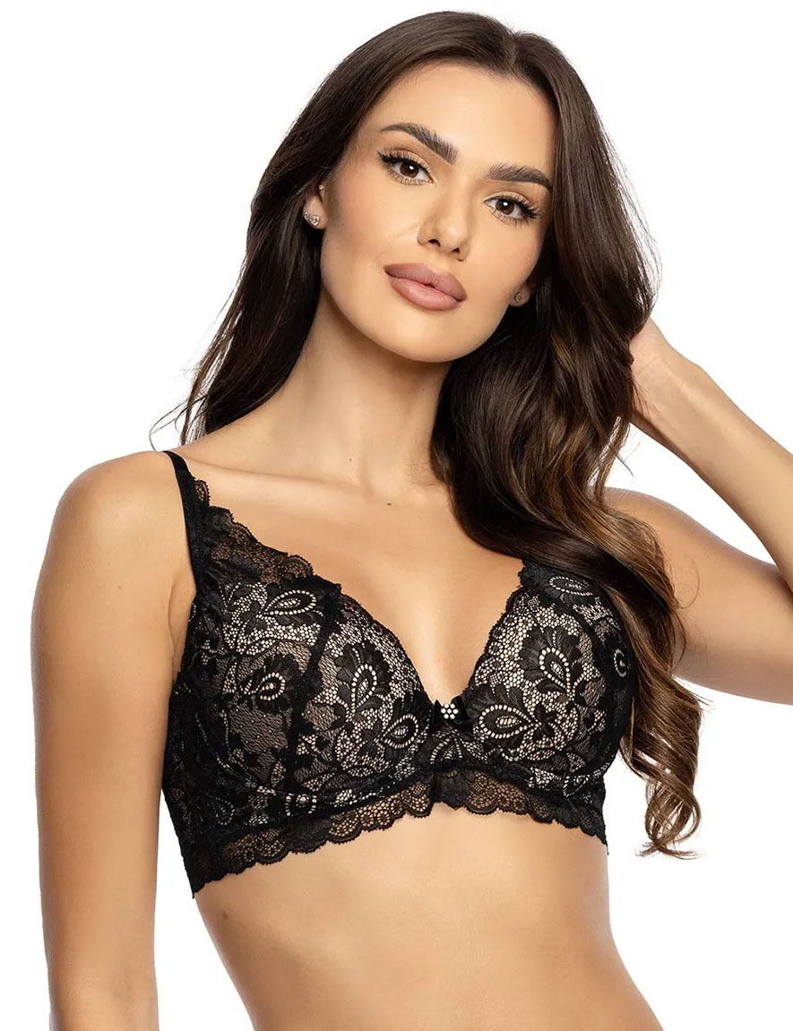 Бюстгальтер бралетт Orhideja 114-267 — это сочетание нежности и комфорта в элегантном черном цвете. Формованные чашки из мягкого поролона идеально облегают и поддерживают грудь, создавая естественный силуэт. Ажурное кружево по внешнй стороне чашек добавляет романтический шарм, а широкий пояс обеспечивает надежную посадку. Роскошный выбор для любого события.