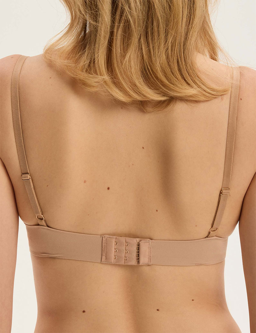 Темно-бежевый бюстгальтер CLEARY 44006 от Esotiq — чувственный минимализм, который очаровывает с первого взгляда. Гладкие чашки из тонкого поролона на косточках собирают и поддерживают грудь, создавая естественное округлое декольте. Ультратонкая бархатистая микрофибра обволакивает тело, как вторая кожа, оставаясь невидимой под одеждой. Идеален для повседневных образов — от блузок до платьев.