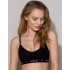 Хлопковый топ черного цвета, благодаря правильному крою хорошо собирает и удерживает грудь. Бретели несъемные, регулируемые по длине. Без косточек, без застежки. Под грудью широкая брендированная резинка яркого красного цвета, обеспечивает комфортную посадку и фиксацию.