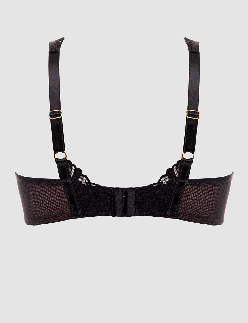 Бюстгальтер-бралетт из коллекции Alles TRUFFLE NOIR — кружевная модель с мягкими чашками на каркасах, приподнимает и поддерживает грудь, обеспечивая комфортную поддержку, при этом не скрывая красоты природных форм. Из роскошного чёрного кружева и эластичной сетки, продублированных сеткой цвета трюфеля, он обволакивает как нежное объятие — для женщин, ценящих элегантность и модные тенденции.
