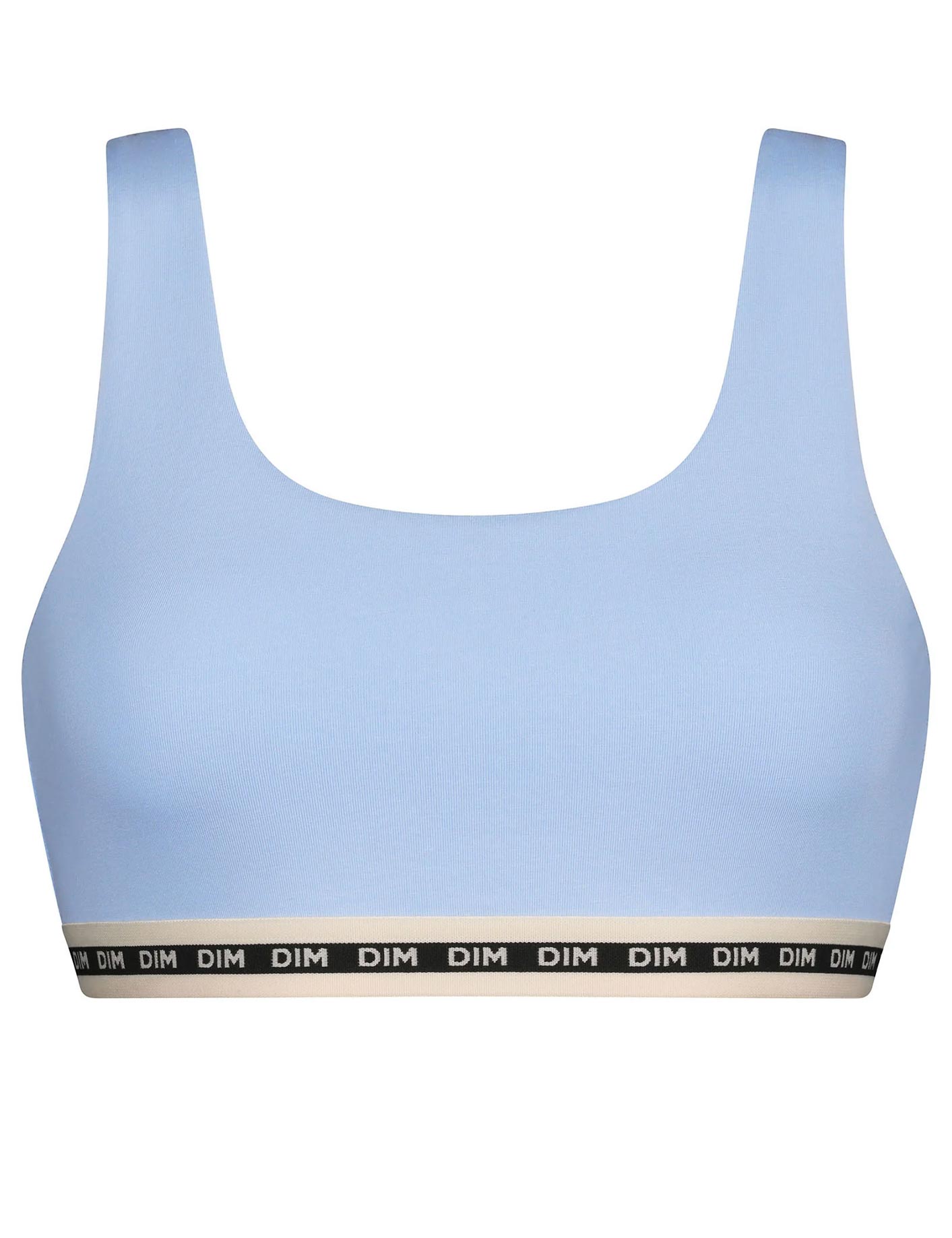 Эластичный бюстгальтер-топ Dim ICON модель 0DD8 в лазурно-голубом цвете — это удобная модель без застежки, выполненная из мягкого смесового полотна с высоким содержанием хлопка и модала, что делает его приятным на ощупь. Обеспечивает абсолютный комфорт и хорошую поддержку для небольшой груди. Брендированная резинка подчеркивает спортивный стиль. Идеален как для повседневной носки, так и для занятий спортом.
