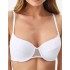 На каркасах. Чашка сшивная, с диагональным членением, продублирована по всему объему тонким слоем современного наполнителя. Внутренняя сторона из трикотажного хлопкового полотна. Перемычка между чашками широкая, из полупрозрачной сетки. Пояс выполнен из эластичного полотна с микрофиброй. Бретели-спагетти несъемные, регулируемые по длине сзади.