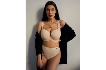 Бюстгальтер Kris Line из коллекции FORTUNA COMFORT в нейтральном телесном оттенке. Его гладкие формованные мягкие чашки обеспечивают красивое округление груди и надежную поддержку, что особенно важно для обладательниц пышных форм. Модель идеально сочетается с любым нарядом, особенно облегающими летними платьями, придавая образу элегантность и уверенность.