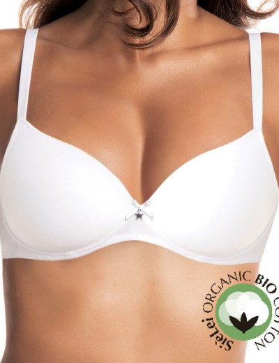 Бюстгальтер NATURAL COTTON 1428 от марки Sielei — из мягкого органического хлопка белого цвета, с формованными чашками и тонким поролоном для естественной поддержки и комфортного силуэта, идеален для повседневного ношения.