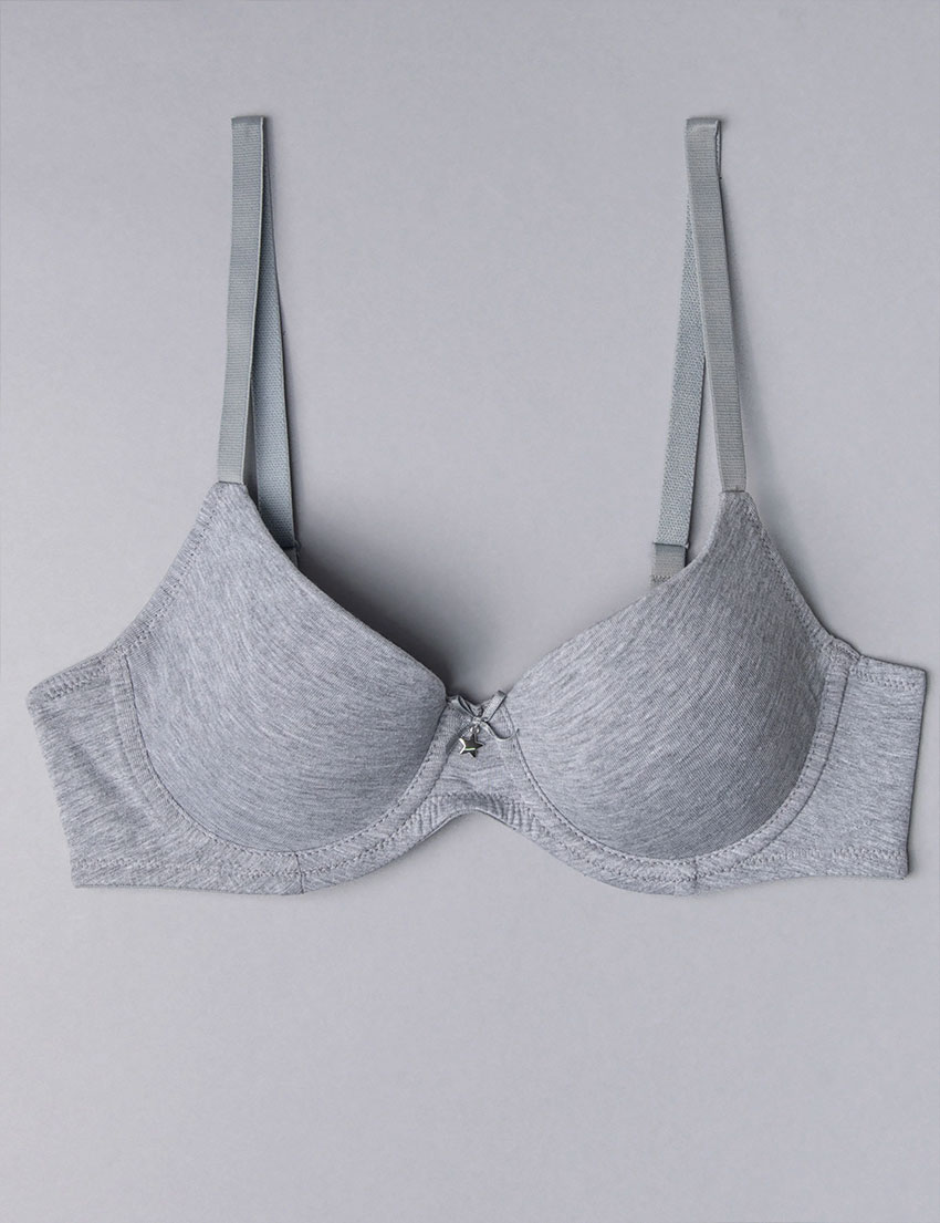 Бюстгальтер NATURAL COTTON 1428 от марки Sielei — из мягкого органического хлопка серого меланжевого цвета, с формованными чашками и тонким поролоном для естественной поддержки и комфортного силуэта, идеален для повседневного ношения.