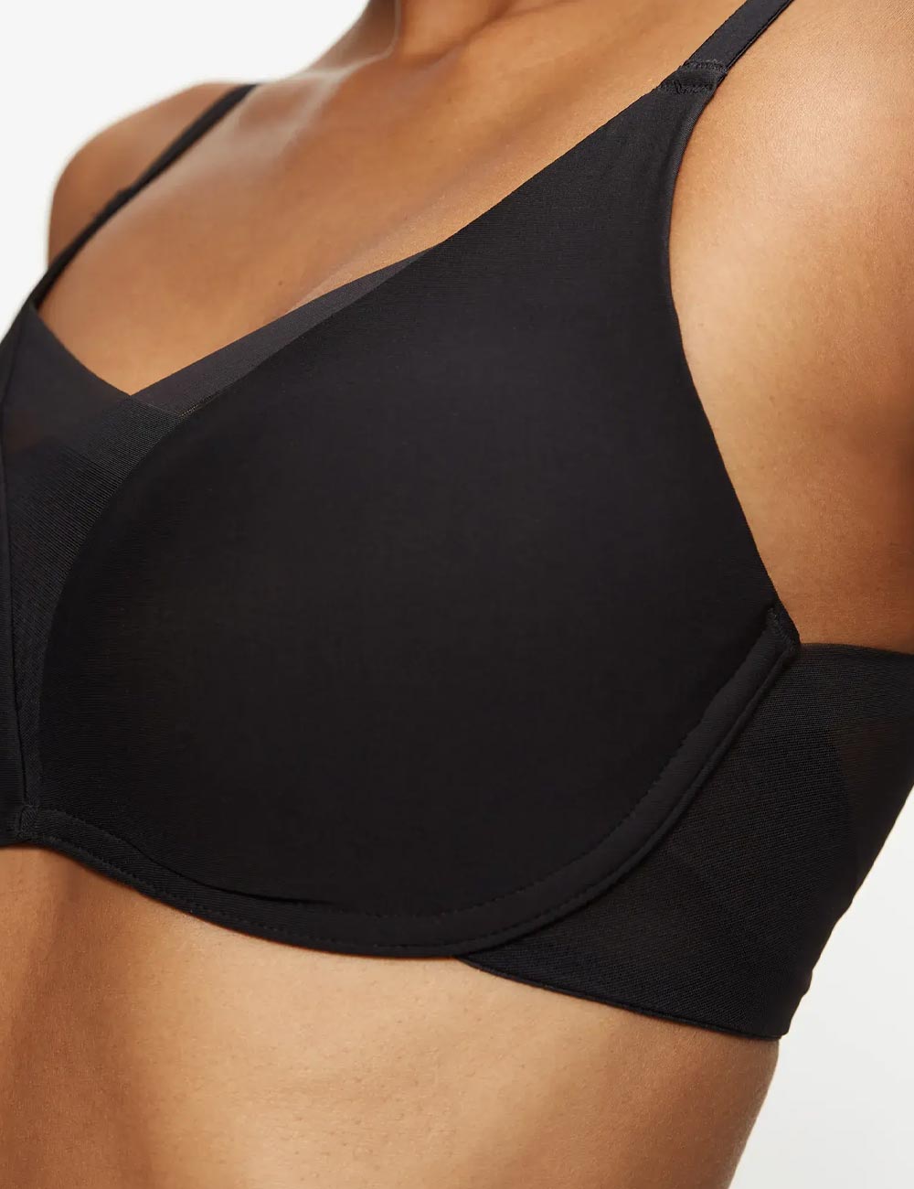 Бескаркасный чёрный бюстгальтер с формованными чашками SHAPE SMART P от бренда Triumph гармонично сочетает функциональность и современный стиль. Переплетённые сетчатые вставки в зоне декольте и инновационные чашки из эластичной 4D-пены обеспечивают необходимую поддержку. Сетчатые элементы на боках и спине способствуют дополнительному выравниванию. Секрет успеха заключается в технологии Fit-Smart и использовании высокотехнологичной эластичной ткани 4D, идеально подстраивающейся под индивидуальные особенности фигуры.