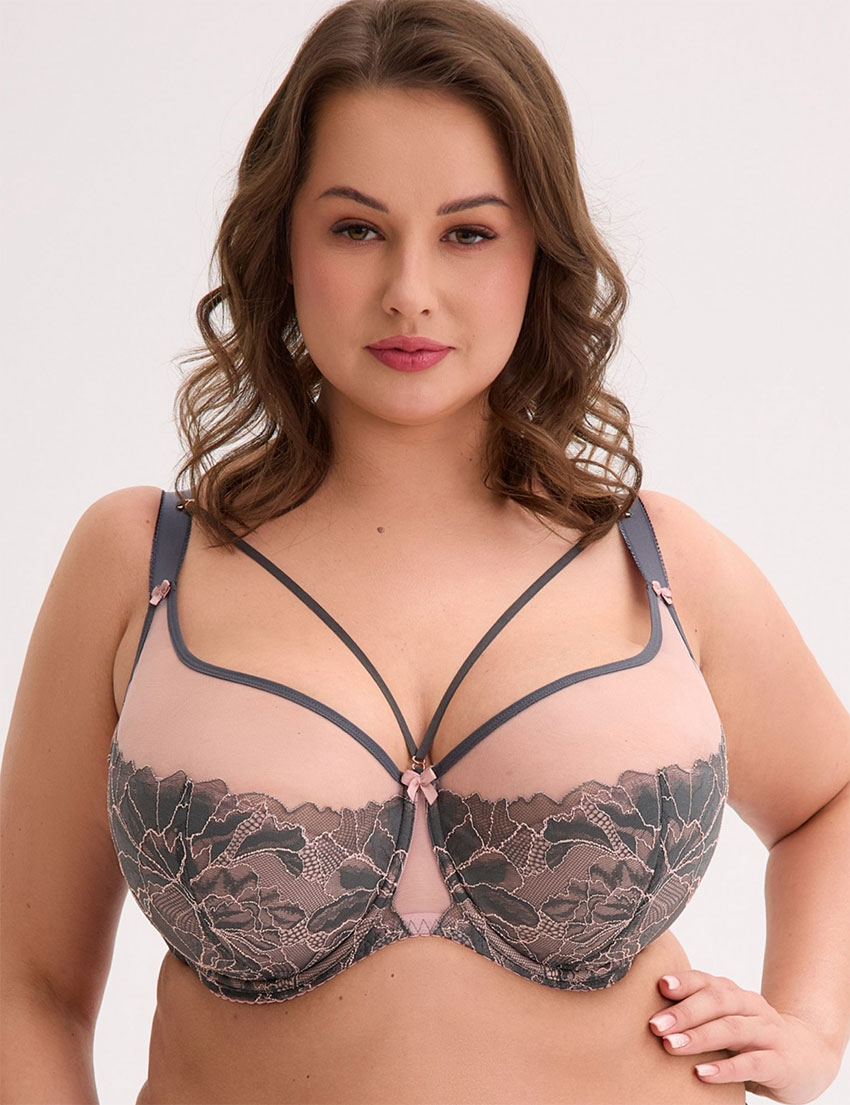 Бюстгальтер PRIYA 1318 semi-soft maxi от Gaia создан для женщин с большим размером груди для комфорта в течение дня и гармонии телу. Чашки из плотной пудровой сетки украшены по низу биколорным кружевом темно-серого цвета. Полупоролоновая конструкция собирает грудь, придавая ей округлую форму и слегка приподнимая. Тонкая съемная стрэп-бретель добавляет изысканный декор.