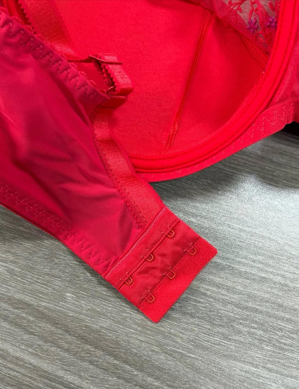Яркий красный бюстгальтер VIOLA 1109 от бренда Valmira - оптимальное сочетание удобства и высокого латвийского качества для женщин с пышной грудью. Выполнен из красивой цветочной вышивки с вкраплениями цвета фуксии и гладкой микрофибры. Нижняя деталь чашечек изнутри представляет собой сочетание упругого поролона и нежного хлопка. Конструкция поддерживает и приподнимает бюст, сохраняя при этом его естественную красивую форму и придает привлекательность женскому декольте.