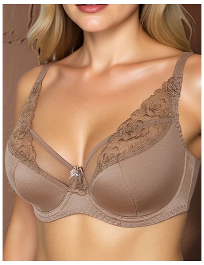 Бюстгальтер АНАБЕЛЬ 6050 от Albina L в оттенке фраппе элегантно облегает формы благодаря полумягким чашкам, дублированным хлопком. Сочетание гладкой микрофибры, вышивки и прозрачной сетки создает изысканный образ, обеспечивая отличную поддержку пышной груди. Эта модель, усиленная мягким поролоном снизу, дарит уют и особый шарм вашему привычному повседневному гардеробу.