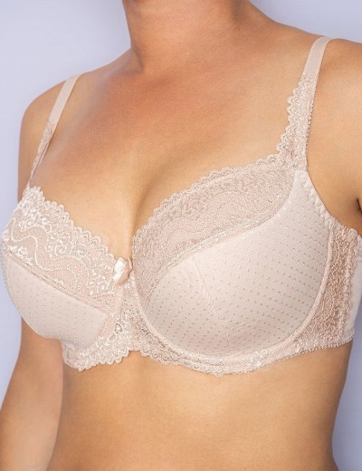 Классический бюстгальтер ETUDE 6040 от бренда Albina L в натуральном бежевом оттенке пион, выполнен из набивной микрофибры в точку и мягкого кружева. Нижняя часть чашек дополнена поролоном и хлопком, что обеспечивает надежную поддержку и максимальный комфорт для обладательниц пышной груди. Прекрасно подходит для повседневной носки, позволяя чувствовать себя уверенно.