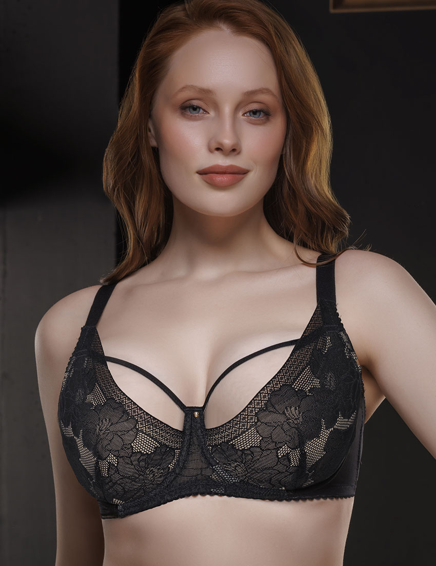 Элегантный черный бюстгальтер AMANDA 8343 от Mioocchi – современная нежность для женского комфорта. Кружевные чашки с поддержкой тонким поролоном внизу приподнимают и придают красивую округлую форму, особенно радуя обладательниц пышной груди. Смещенный верхний край чашек делает посадку еще удобнее. Идеален для любых поводов – добавь нотку романтики под любым нарядом и почувствуй себя звездой вечера!