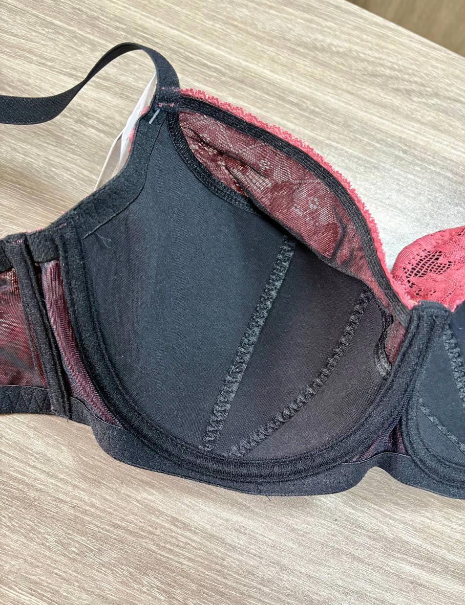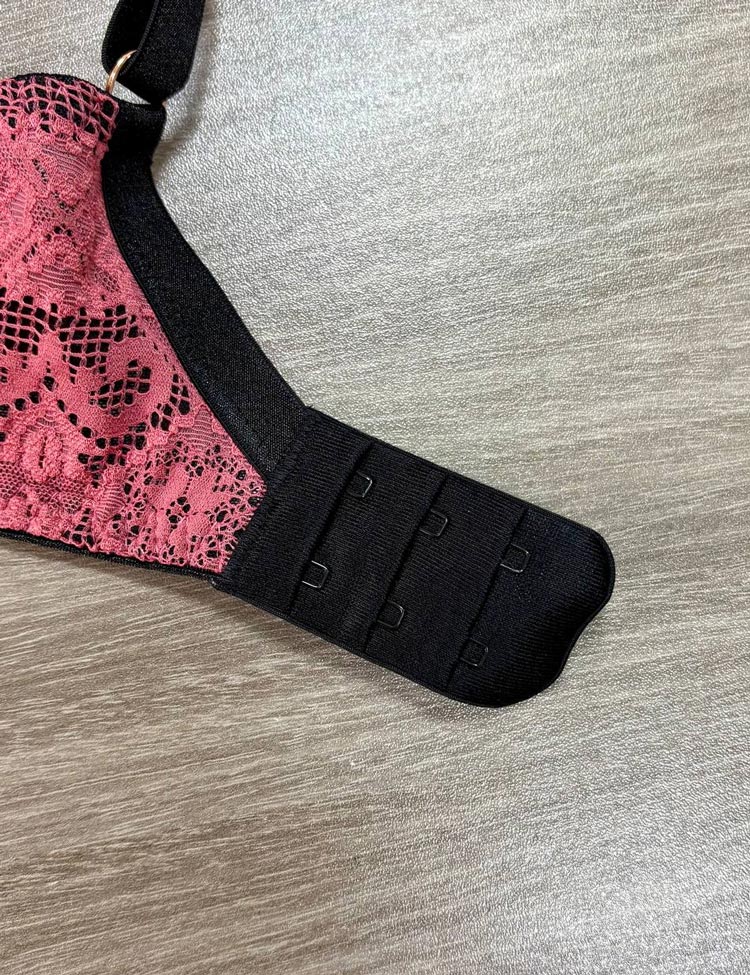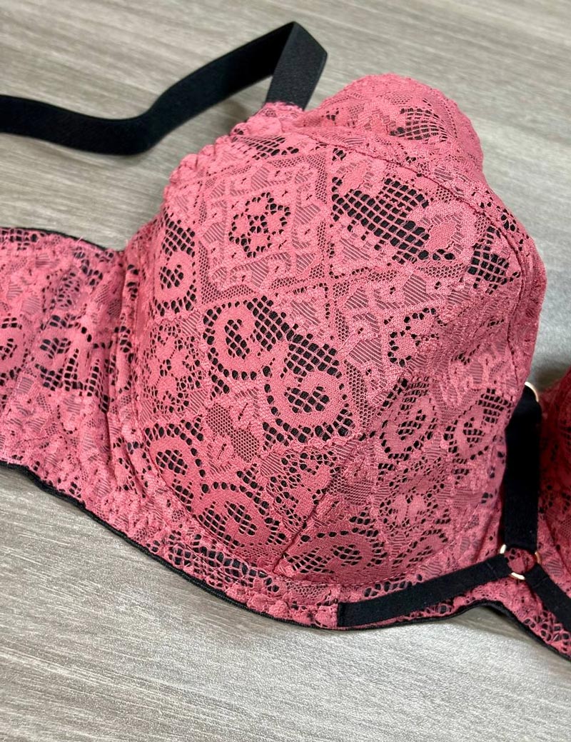 Восхитительный кружевной бюстгальтер с полумягкими чашками из модной коллекции ГОЙИ малиново-розового оттенка в сочетании с контрастной отделкой черного цвета.