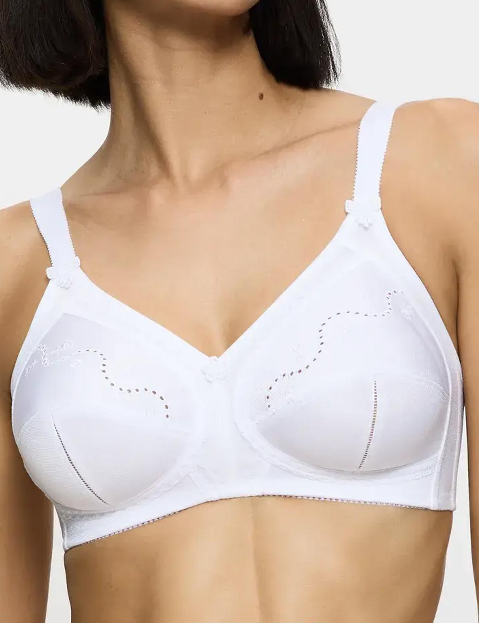 Бюстгальтер DOREEN + COTTON 01 N от бренда Triumph — модель с мягкими закрытыми чашками без каркасов. Изготовлен из удобной формирующей ткани с хлопком в белом цвете, обеспечивает естественное формирование, поддержку и визуальное уменьшение груди.