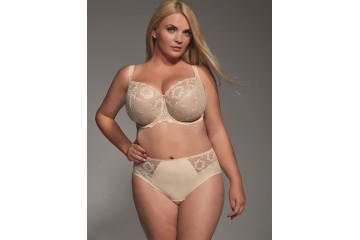 Бюстгальтер Kris Line FORTUNA soft — это бежевый бюстгальтер с мягкими чашками для большой груди. Мягкая, но прочная полупрозрачная сетка, декорированная золотистыми и молочными нитями, добавляет изысканности, в то время как диагональный рельеф чашки обеспечивает отличную поддержку и форму. Идеальный выбор для тех, кто ценит качество и эстетику в повседневной одежде.