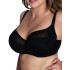 Чашка сшивная, с тройным диагональным членением, с боковой корректирующей деталью в районе проймы. Нижняя деталь и подкрой выполнены из однотонного эластичного полотна с микрофиброй, верхняя деталь - из двойного слоя эластичной сеточки. Пояс выполнен из эластичного полотна с микрофиброй и укреплен вертикальными упругими пластинами. Бретели несъемные, регулируемые по всей длине.