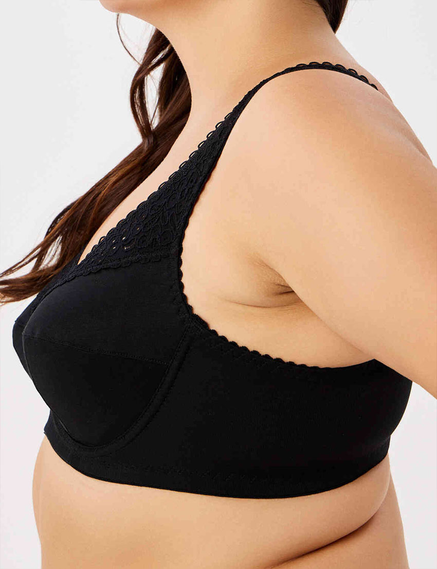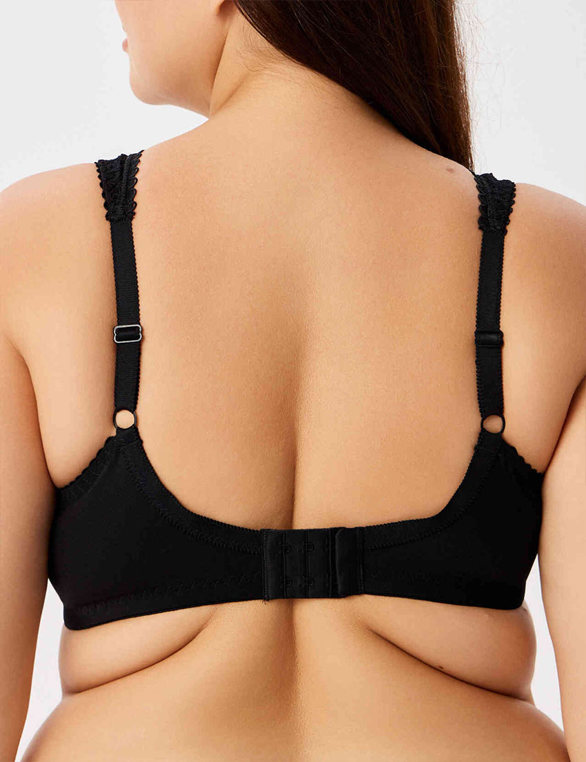Бюстгальтер больших размеров COTTON CLASSIC L02131 / L02150 от Lauma — это комфортная модель в черном цвете, выполненная из эластичного трикотажного хлопкосодержащего полотна и кружева. Мягкие закрытые чашки с боковым подкроем формируют грудь, направляя её к центру. Широкий пояс и усиленные бретели обеспечивают дополнительную поддержку, идеально подходя для пышных форм.