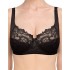 На каркасах. Чашка конструкции Ancona от ТМ Mioocchi сшивная, с двойным диагональным членением, с боковой корректирующей деталью в районе проймы, плавно переходящей в бретели. Нижняя деталь чашки выполнена из эластичного кружевного полотна на подкладке из трикотажного хлопка. Верхняя деталь чашки кружевная. Пояс и боковой подкрой выполнены из плотного гладкого эластичного полотна с микрофиброй. По нижнему краю стана усиленная резинка. Бретели широкие спереди, регулируемые по длине сзади.