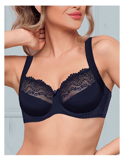 Бюстгальтер Albina L 7008 из коллекции ETUDE в темно-синем цвете «ночная тень» дарит комфорт и отличную посадку на целый день. Мягкие чашки с боковым подкроем направляют бюст к центру, одновременно маскируя несовершенства подмышечной области. Выполнен из эластичного набивного полотна в точку и эластичного кружева, на спинке - однотонное полотно soft.