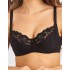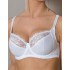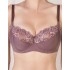 На каркасах. Чашка сшивная, с тройным диагональным членением, с боковой корректирующей деталью в районе проймы. Нижняя и корректирующая детали чашки выполнены из гладкого эластичного полотна с микрофиброй. Верхняя деталь чашки из мягкого кружева. Пояс выполнен из эластичного полотна с микрофиброй и укреплен вертикальными упругими пластинами. Бретели несъемные, регулируемые по всей длине.