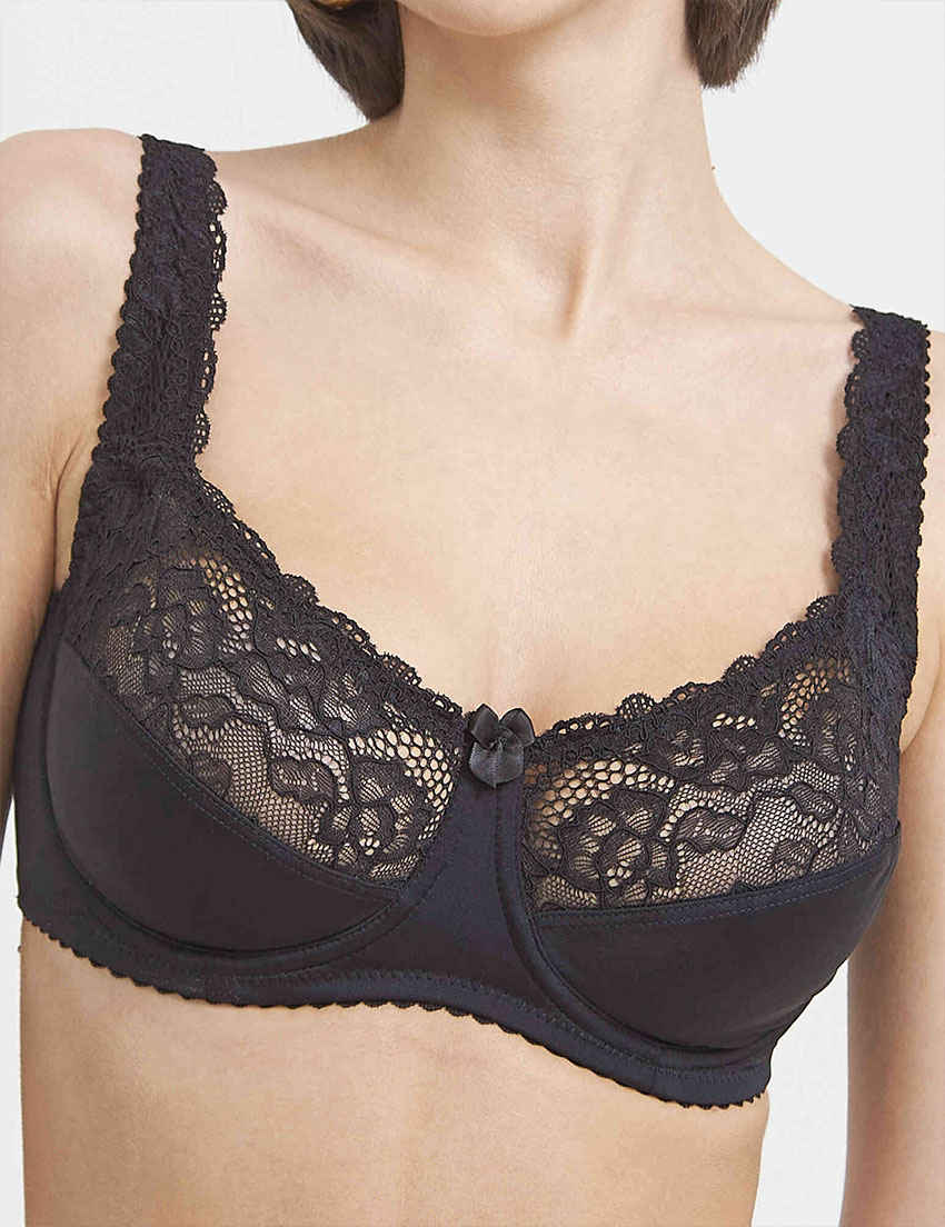 Бюстгальтер Simona M 912 в базовом черном цвете, с широкими бретелями создан для повседневного комфорта и элегантности. Модель из гладкой микрофибры и ажурного кружева, с мягкими чашками, которые подчеркивают естественную форму. Специальный боковой подкрой фиксирует и направляет грудь, создавая красивый силуэт. Идеальный выбор, когда важно качество и безупречный вид.