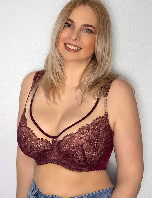 Бюстгальтер BORDEAUX 7011 от Fluide — удобная повседневная модель для пышной груди с анатомическим кроем и надёжной поддержкой. Мягкие поролоновые бретели и широкий пояс равномерно распределяют нагрузку, снимая давление с плеч и спины. Изготовлен из кружева и гладкой микрофибры с сатиновым блеском в цвете бургундия — элегантно, скромно, но с безупречным комфортом.