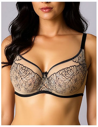 Бюстгальтер Albina L 7052 из коллекции JESSICA — воплощение женственности в миндальной палитре с изысканными черными акцентами. Сшитый из неэластичной вышивки, сетки и мягкого полотна soft, он обволакивает грудь нежной, почти невесомой текстурой. Мягкие чашки с каплеобразным кроем не просто поддерживают — они подчеркивают естественные формы, маскируя малейшие особенности в зоне подмышек.
