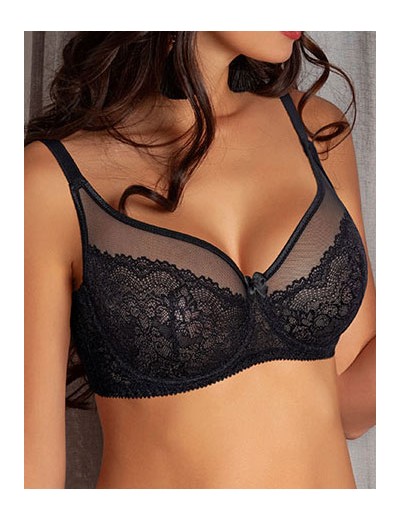 Чёрный бюстгальтер Albina L модель ELEGANT 7051 - выразительное сочетание легкости и женственности. Удобный для большой и средней груди, он нежно формирует декольте, приподнимая и поддерживая грудь. Глубокие каплеобразные мягкие чашки из кружева и прозрачной сеточки с гладкими резинками по контуру создают изысканный образ, актуальный для любого дня.