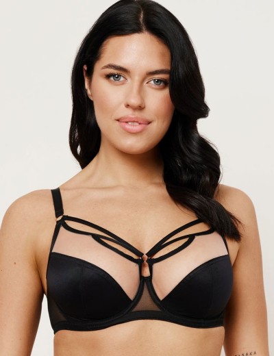 Эффектный бюстгальтер BUTTERFLY soft от польского бренда Subtille — это стильный акцент для большой груди: мягкие чашки из прозрачной нюдовой сетки и черного неэластичного полотна Симплекс, подчёркивают естественную красоту, даря комфорт и отличную поддержку, а необычные стрэп-ленты в форме бабочки придают образу изюминку.