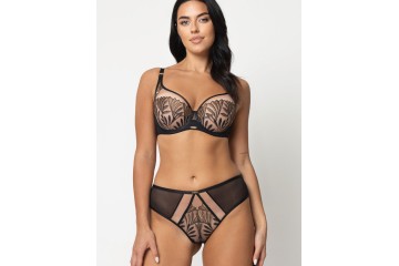 Элегантный черно-бежевый бюстгальтер из коллекции Subtille FRIDA с мягкой закрытой чашкой в форме капли представляет собой нежное сочетание телесной сеточки и изысканной блестящей вышивки. Конструкция чашки слегка вытянутой каплеобразной формы эффективно скрывает небольшую асимметрию и преображает подмышечную область, обеспечивая особый комфорт обладательницам пышной груди.