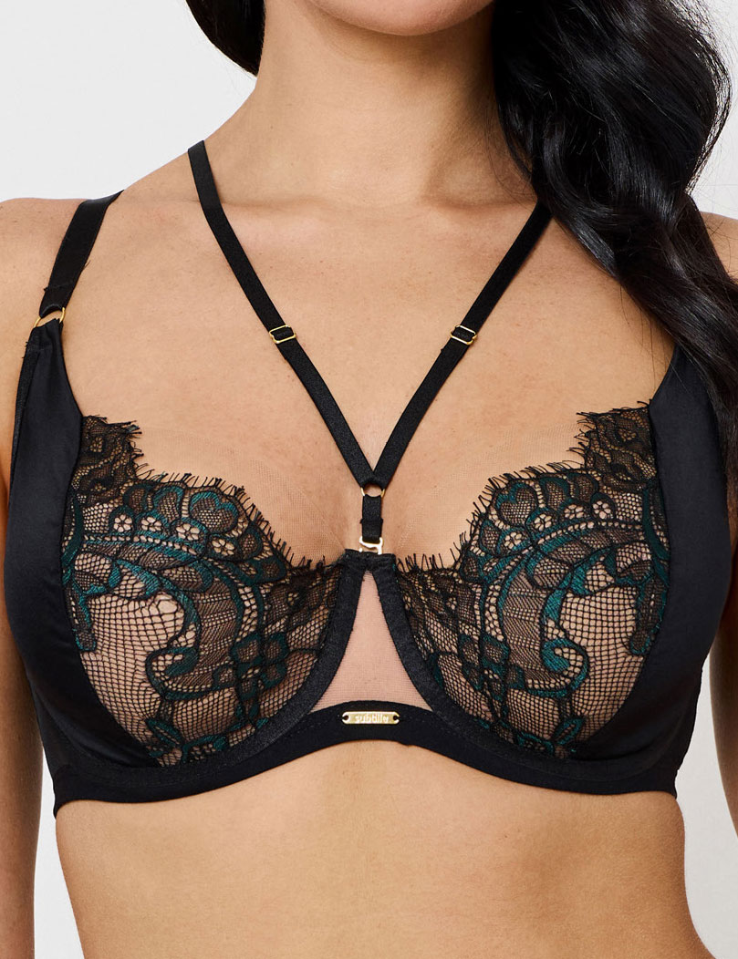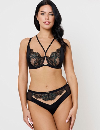 Эффектный бюстгальтер Subtille STELLA в черном цвете — кружевной соблазн с бирюзовыми акцентами, дополненный сеткой и боковым подкроем из микрофибры для тех, кто ценит утончённую интригу. Тонкие декоративные стрэп-бретели и мягкие чашечки с нюдовой прозрачной сеткой создают женственный образ, визуально делая декольте более открытым.