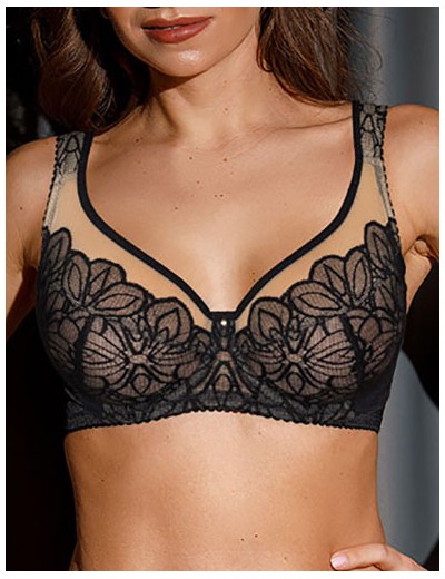 Бюстгальтер STELLA 7011 от Fluide — создан для женщин с пышной грудью, сочетая поддержку, комфорт и анатомическую точность. Широкие мягкие бретели и боковые панели равномерно распределяют нагрузку, снимая давление с плеч и спины. Изготовлен из черного французского кружева и микрофибры с сатиновым блеском — изысканно, деликатно, безупречно. Поддержка, которая не утомляет.
