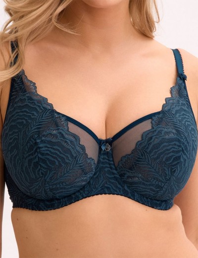 Темно-синий бюстгальтер JESSIA 1229 soft balconette от бренда Gaia отлично сбалансирован между поддержкой и эстетикой. Благодаря вертикальному крою чашек, красиво приподнимает и формирует грудь, создавая чёткое декольте. Выполнен из кружева и сетки. Невероятно нежный на ощупь, обеспечивает комфорт даже в больших размерах.