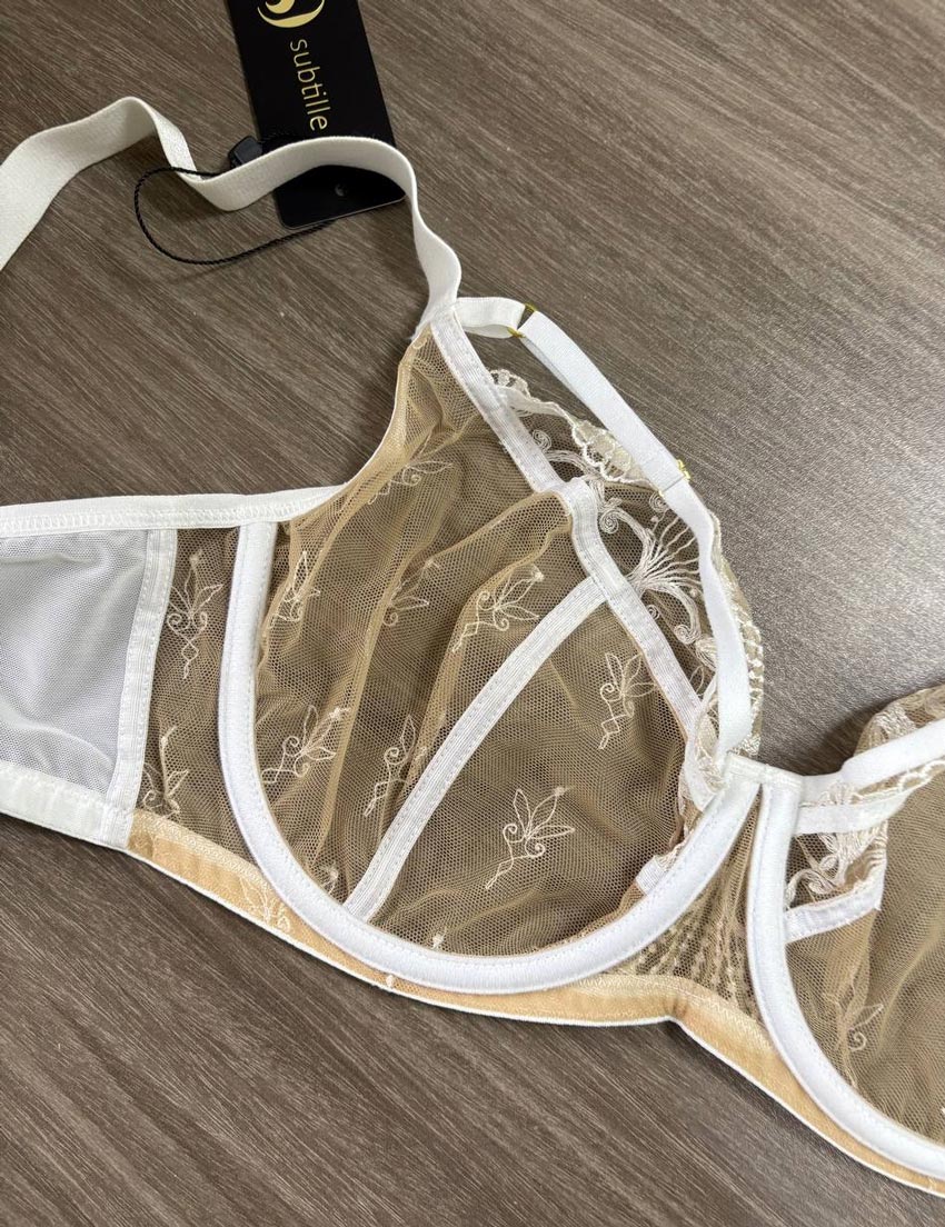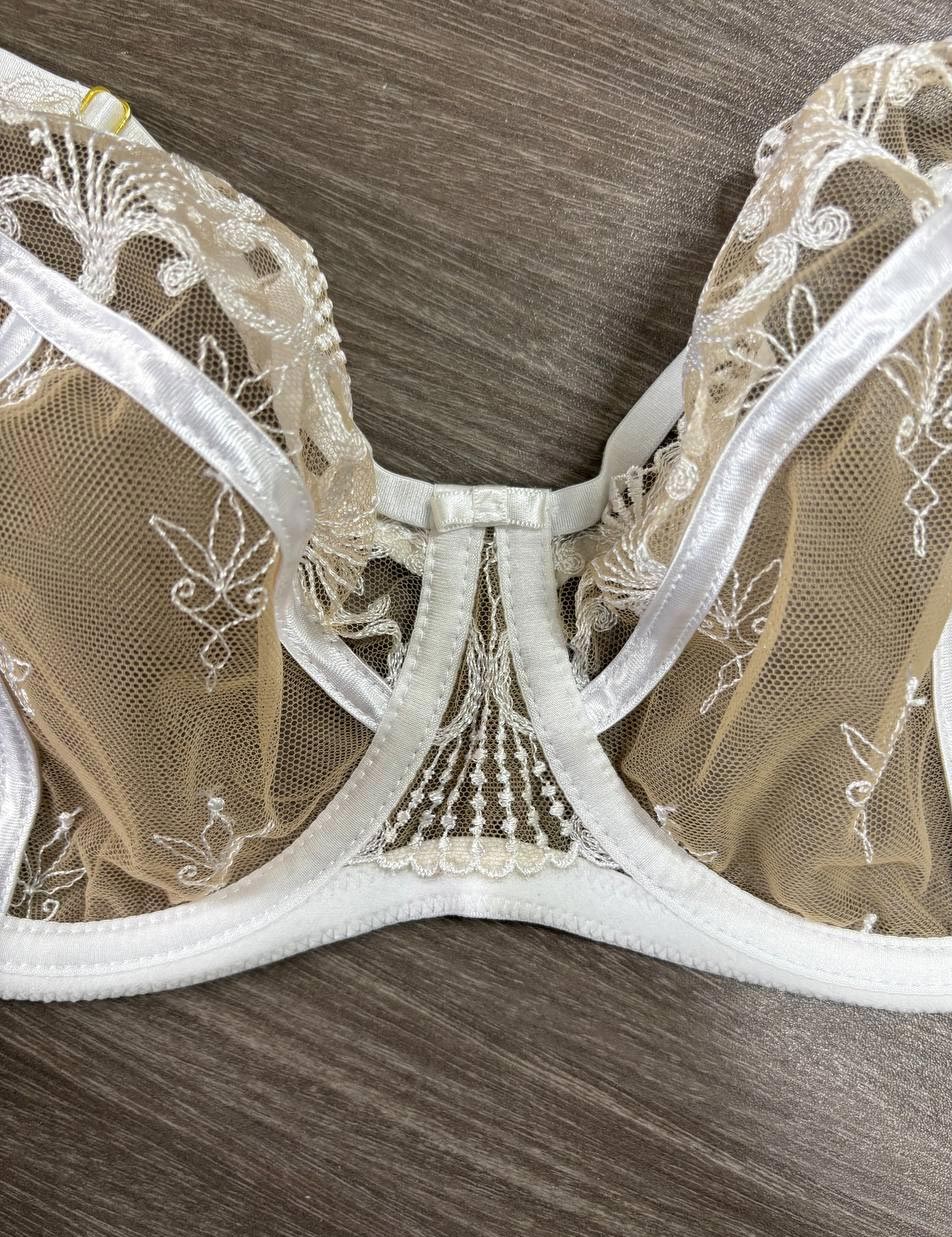 Шикарный бюстгальтер на большую грудь Subtille AVRIL WHITE soft в искрящей белой цветовой гамме. Легкие мягкие чашки из вышивки по телесной сетке дарят комфорт и отличную посадку женщинам с пышными формами, собирают грудь вместе, чувственно приподнимают ее. Будет идеальным выбором для особенных моментов и повседневной уверенности.