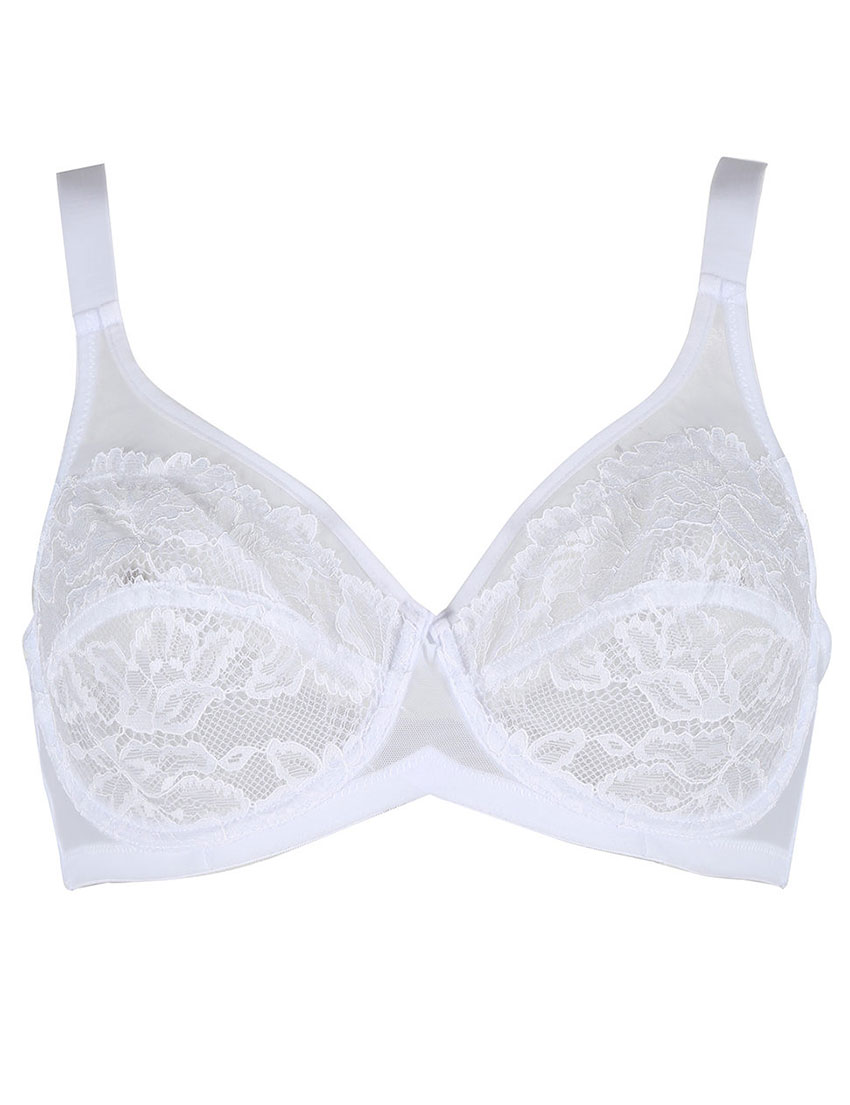 Бюстгальтер Infiore PETRA белого цвета - культовая модель из коллекции CLASSIC PIZZO с мягкими сшивными чашками размера C на каркасах и горизонтальным членением, обеспечивающими идеальную поддержку и естественную форму. Полупрозрачное кружево и сетчатые вставки создают соблазнительный эффект прозрачности, а гладкая микрофибра на спинке дарит комфорт и лёгкость.