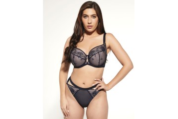 Бюстгальтер женский на объемную грудь от польского бренда Kris Line модель CHLOE soft full cup с мягкими глубокими чашками в темно-синей цветовой гамме. Боковая корректирующая деталь в районе проймы помогает хорошо смоделировать форму груди, собрав её к центру. Чашки выполнены из прочной полупрозрачной сетки с цветочной вышивкой, напоминающей узоры тату.
