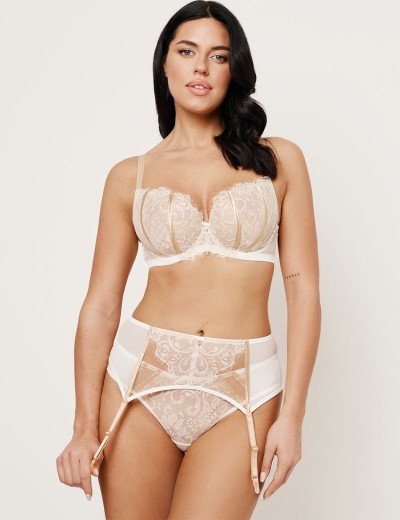 Нежный бюстгальтер-балконет из коллекции Subtille HARMONY GOLD создан, чтобы подчеркнуть вашу женственность и сформировать завораживающее декольте. Мягкие полномерные чашки из кружева молочного цвета с двойными вертикальными золотистыми рельефами обеспечивают надежную поддержку и приподнимают грудь, направляя её к центру для создания аппетитного «яблочка».