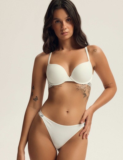 Нежный белый бюстгальтер пуш-ап ABRIA 43847 от Esotiq привносит свежесть и легкость в повседневную элегантность. Плотные гладкие чашки мягко приподнимают грудь, а эластичная микрофибра в рубчик обеспечивает комфорт при долгом ношении. Акцентная лента с логотипом Bloovii и возможность перестегивать крест-накрест бретели добавляют современный спортивный штрих к классическому стилю.