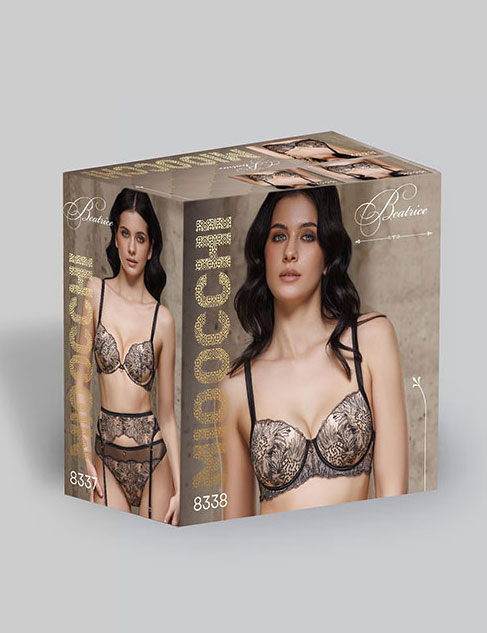 Элегантный бюстгальтер с гелевым пуш-ап BEATRICE 8337 от Mioocchi визуально увеличивает грудь, нежно приподнимает и подчёркивает декольте для соблазнительного силуэта. Изысканная чёрная вышивка на нюдовой подложке, с золотым люрексом, гармонирует с фурнитурой и кольцом на перемычке. Сатин на бретелях и поясе добавляет притягательный блеск. Идеален для ценителей элегантного соблазна.