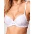 На каркасах. Чашка формованная, с нижним градуированным слоем наполнителя Soft touch для легкого эффекта пуш-ап (+1 размер). Линия соединения деталей стана занижена. Пояс выполнен из эластичного кружевного полотна со стилизованными цветочным мотивом. Бретели несъемные, обшиты тонкой микрофиброй спереди, регулируемые по длине сзади.