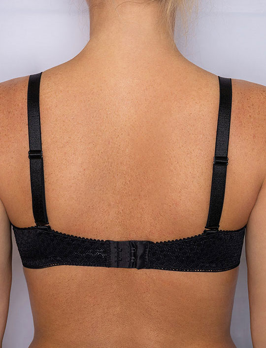 Бюстгальтер Albina L 1769 PERFECT черного цвета сочетает гладкие формованные чашки и мягкий гелевый пуш-ап, который естественно приподнимает грудь и создает визуально соблазнительное декольте. Плоское кружевное полотно вместе с эластичным кружевом обеспечивают облегание, не образуя складок и оставаясь невидимым под любой одеждой.