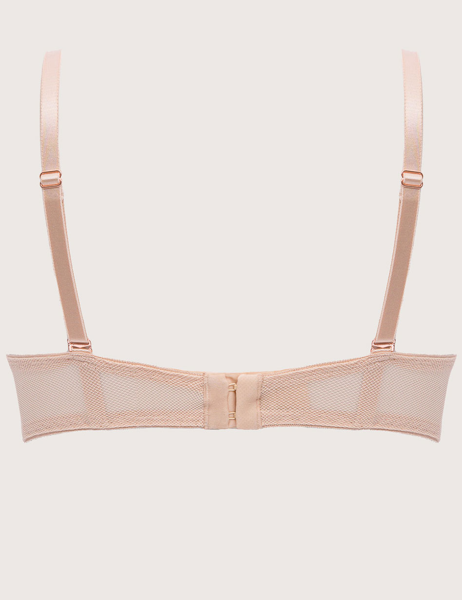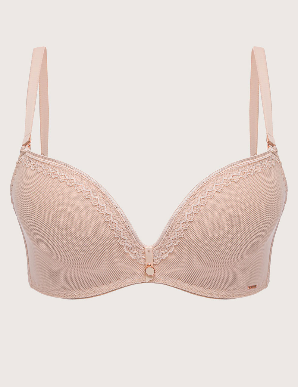 Бюстгальтер Alles NOCTURN 03 super P-UP в нежном бежевом — ваш секрет пышного и чувственного декольте. Двойной пуш-ап приподнимает и добавляет объем, а отсутствие косточек дарит комфорт на весь день. Цельноформованные чашечки с прозрачной сеткой и кружевной тесьмой облегают словно вторая кожа. Золотые детали придают образу утонченную роскошь.
