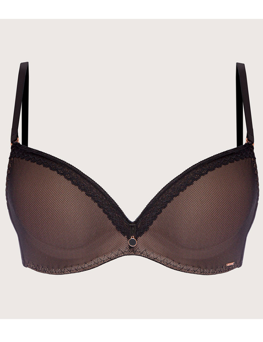 Бюстгальтер Alles NOCTURN 03 super P-UP — ваш секрет пышного и чувственного декольте. Двойной пуш-ап поднимает и добавляет объем, а отсутствие косточек заботится о здоровье груди. Цельноформованные чашечки с черной прозрачной сеткой на бежевой основе облегают, словно вторая кожа. Золотые детали и кружевная тесьма придают образу утонченную роскошь.