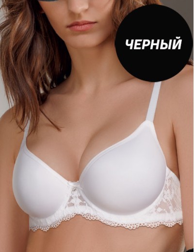 Бюстгальтер Amelie VERA 2524 с мягкими формованными чашками из тонкого дышащего материала «спейсер» чёрного цвета. Форма спинки обеспечивает дополнительную поддержку, а бретели надежно сидят по центру плеча и не спадают. Выполнен из микрофибры и воздушного кружевного полотна с цветочным рисунком. Идеален под облегающую тонкую трикотажную одежду.