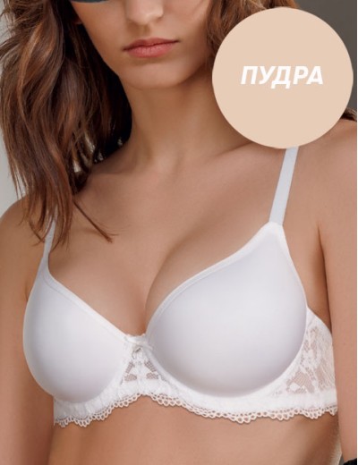 Бюстгальтер Amelie VERA 2524 с мягкими формованными чашками из тонкого дышащего материала «спейсер» нежного пудрового цвета. Форма спинки обеспечивает дополнительную поддержку, а бретели надежно сидят по центру плеча и не спадают. Выполнен из микрофибры и воздушного кружевного полотна с цветочным рисунком. Идеален под облегающую тонкую трикотажную одежду.
