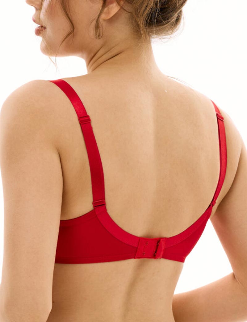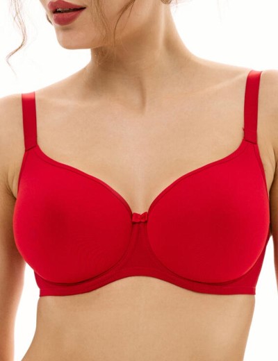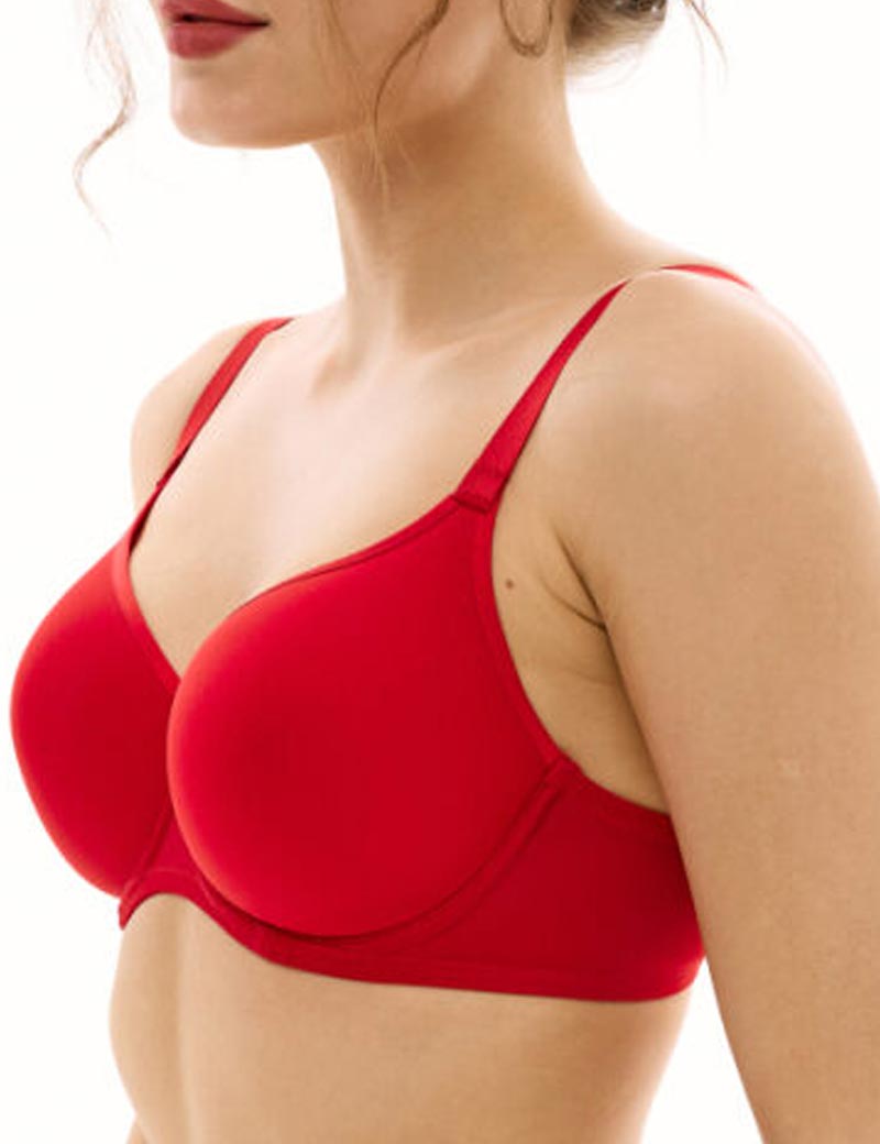 Ультралегкий спейсер без кружева от белорусской марки Sermija модель 169-16-L / 170-16-L из коллекции WOMEN TODAY ярко-красного цвета, с дышащими формованными чашками. Бесшовные гладкие чашки нового поколения легко восстанавливают форму после механического воздействия, не выделяются из-под одежды. Конструкция обеспечивает стабильную поддержку груди и комфорт в течение всего дня, удобен под летние футболки.