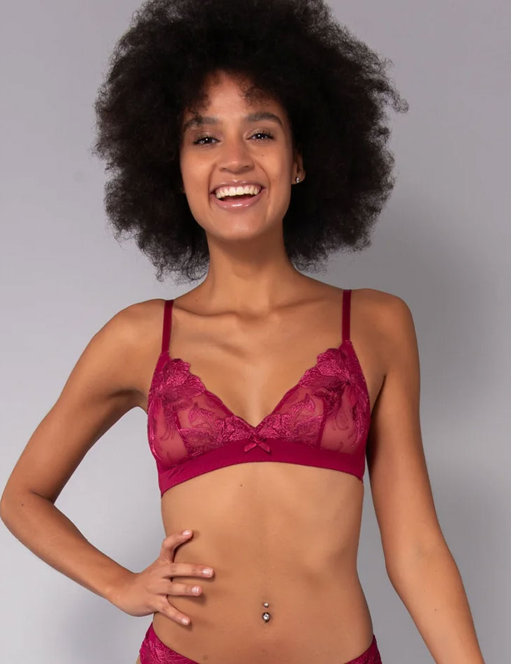 Нежное итальянское белье от бренда Sielei модель PRECIOUS 78367B вишневого цвета. Комплект состоит из бюстгальтера бралетт с мягкой треугольной чашкой без косточек и трусиков-бразилиана со средней линией талии. Выполнен из гладкой микрофибры и вышивки по сетке.