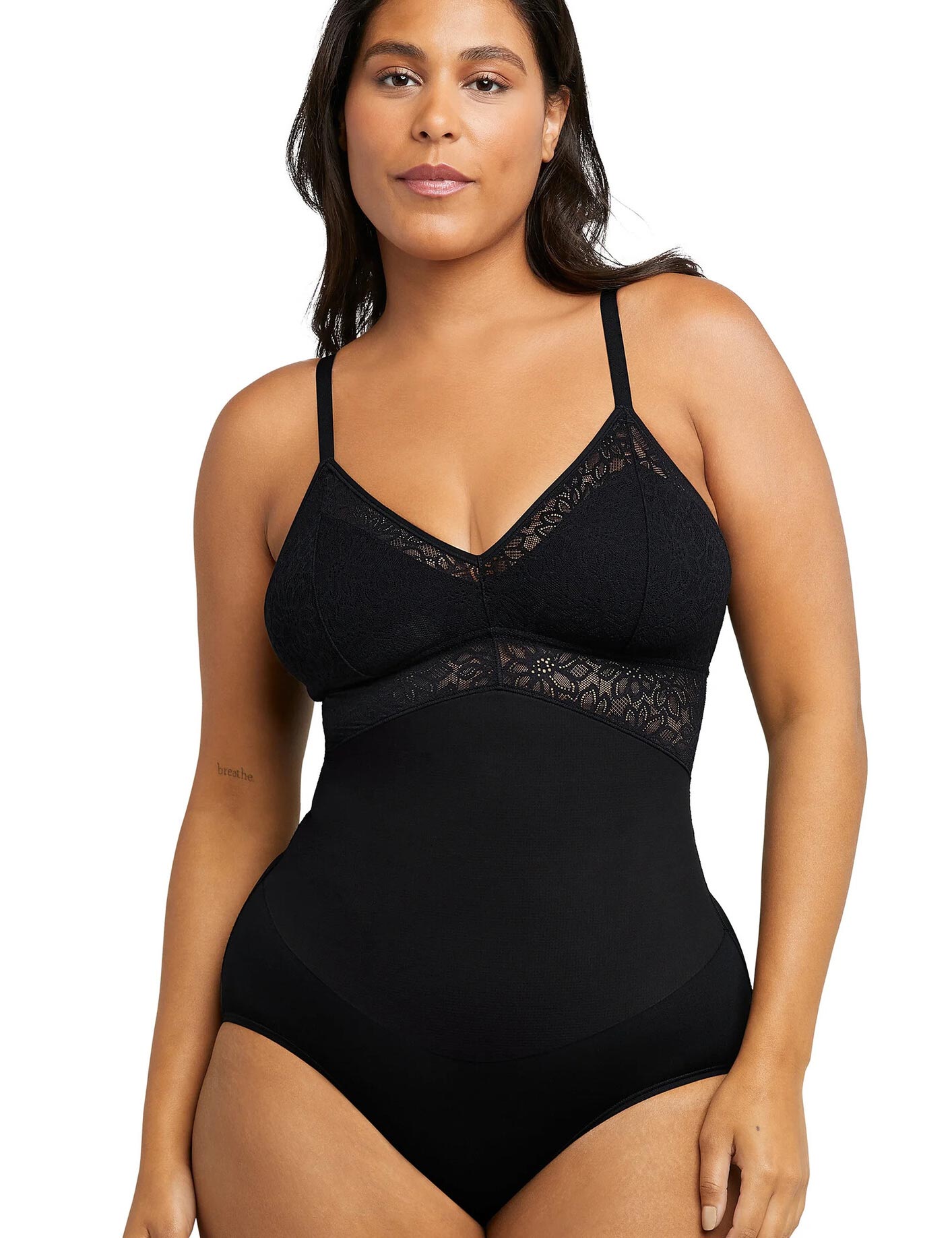 Моделирующее боди Maidenform модель DMS097, средней степени коррекции с мягкими бескаркасными чашками. Выполнено из гладкой шелковистой микрофибры в чёрном цвете. Эффективно сглаживает контуры тела, делает силуэт подтянутым.