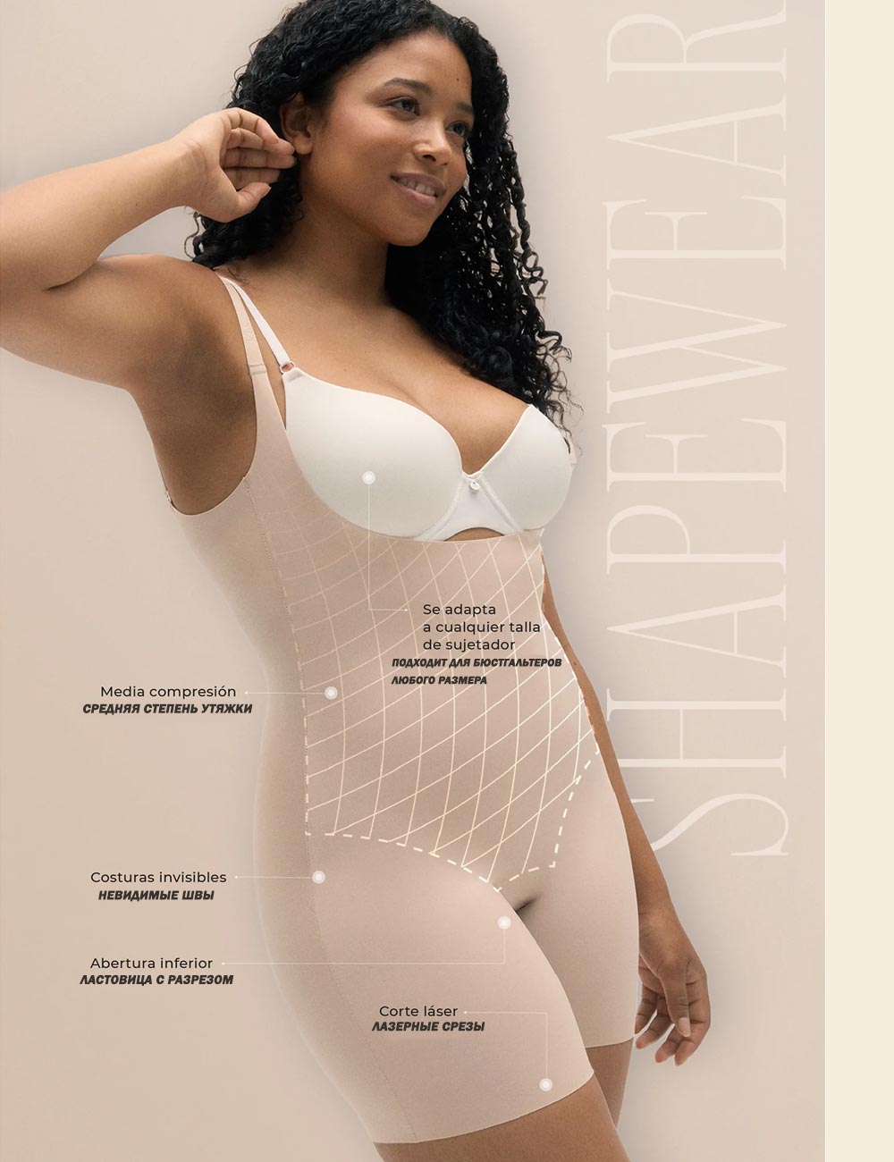 - корректирует форму живота, талии, бедер и ягодиц для более стройного силуэта