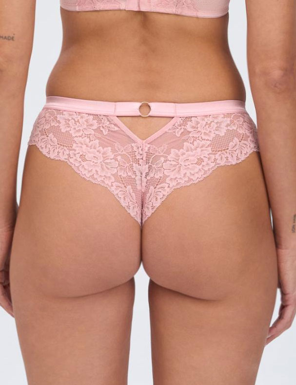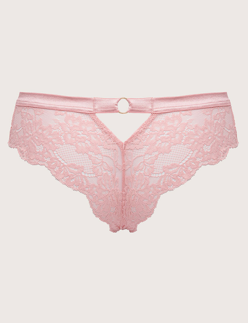 Трусики бразилиана из коллекции POWDER WHISPER от Alles – нежно‑розовые, выполнены из эластичного мягкого кружевного полотна. Они дарят непревзойденную лёгкость, уверенность и изящно подчёркивают формы, добавляя игривость как в повседневный, так и в вечерний образ.