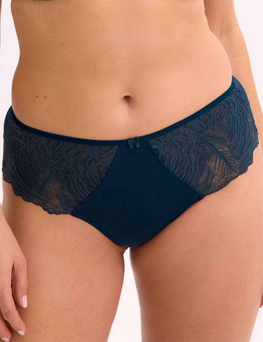 Женские трусики-бразилиана JESSIA 1229 от Gaia в благородном темно-синем цвете акцентируют женственность и элегантность. Средняя линия талии, нежное кружево в сочетании с прозрачной сеткой обеспечивают идеальную посадку и комфорт. Хлопковая вставка спереди заботится о коже. Идеальны для повседневки и вечерих выходов.
